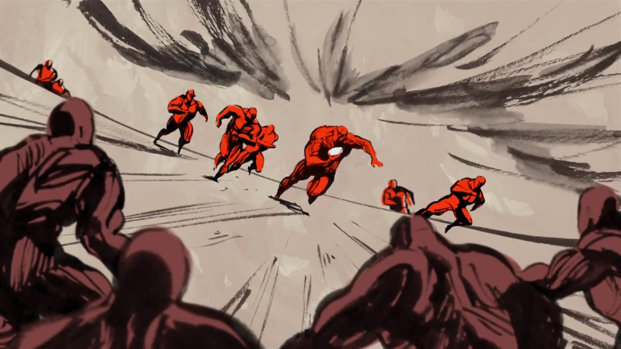 Only one minute left in the second half. The RED ANIMALS are slick, pushing through the deadly defensive line of the BLUE BEASTS. And just when you think it’s all over, the ball goes up in the air. Who will smell sweet victory?