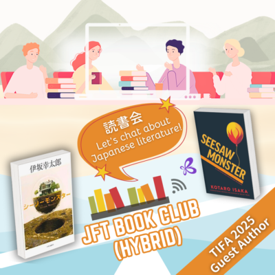 Join us virtually or in person for our book club meeting, where we dive deep into the dark wit and intricate plots of Japan’s master storyteller, ISAKA Kotaro! We’ll discuss his novel Seesaw Monster (or the original Japanese version: 伊坂幸太郎著『シーソーモンスター』, translated into English by Sam Malissa), which consists of two interconnected, suspenseful stories set in the past and the future. Meet fellow readers and share insights into the stories that you might not have discovered on your own!