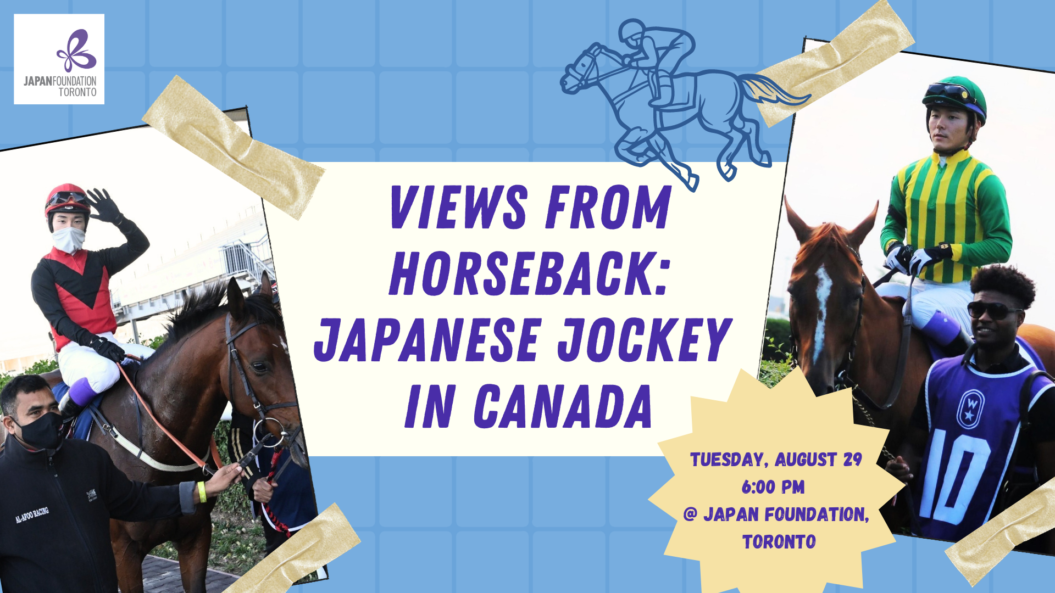 On August 29, the Japan Foundation, Toronto welcomes jockey Daisuke Fukumoto to an evening of conversation. Mr. Fukumoto will talk about his career as a professional horse jockey, his achievements at Canada’s own Woodbine Racetrack, the cultures of horseracing in Japan versus Canada, as well as his feats on the international stage. Horse racing fans and laypeople alike will wish to tune in as we discuss Mr. Fukumoto’s training regime, a modern-day jockey’s relationship with animals, as well as his hopes for the welfare of racehorses after retirement.