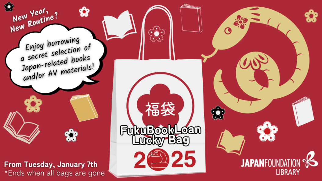 Starting Tuesday, January 7th, 2025, JFT Library Card holders can grab a FukuBookLoan lucky bag, containing a secret selection of books and/or audiovisual materials to borrow from the Library. Enjoy serendipitous discovery from a curated selection of novels, manga, DVD/BR, and more books about Japan or by Japanese authors! You might discover your new favourite authors, amazing film titles, and intriguing topics that you never knew existed!