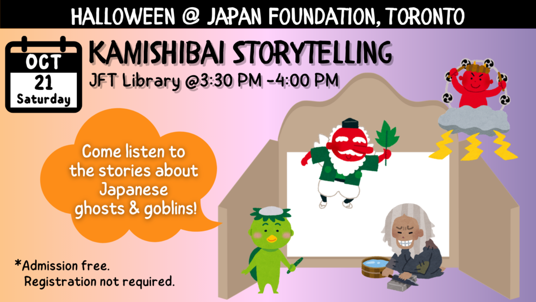 Whether you’re a family with little ones or someone eager to discover the rich tradition of Japanese storytelling, don’t miss this unique event to foster friendship and cultural exchange between Japan and Canada, celebrating the magic of Kamishibai and Halloween at the same time!