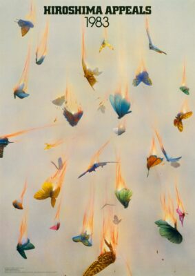 Responding to and stimulated by young FUKUDA’s sensational success, Japan’s graphic design giant KAMEKURA Yūsaku organized two unique design projects to enlighten and educate himself and all other members of Japan Graphic Designers Association, JAGDA in 1983. KAMEKURA Yūsaku designed “Butterflies Burning Falling” the first poster of the “Hiroshima Appeals” annual poster promotion project. JAGDA, led by KAMEKURA Yūsaku, also launched an annual national peace poster exhibition and competition, in which all JAGDA members contributed and participated. These paired projects have worked together to advance the development and creation of peace posters for years to come.