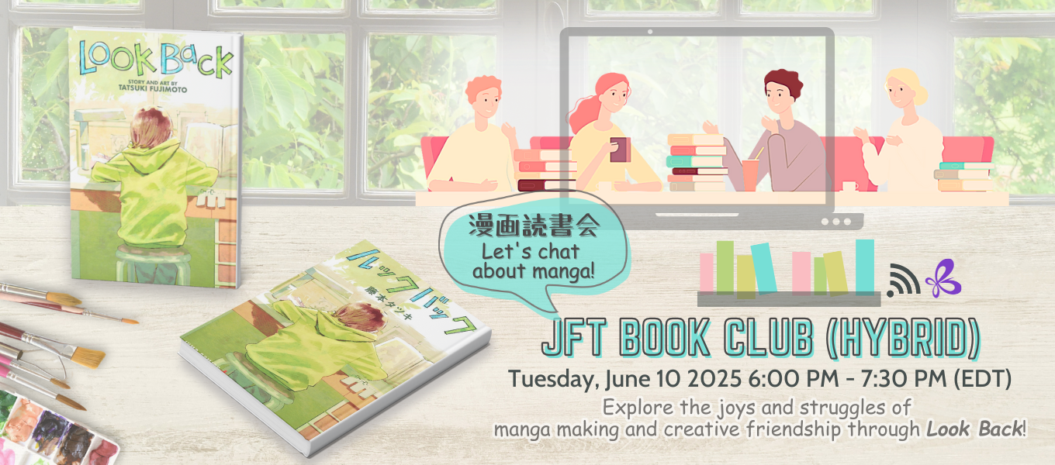 For the upcoming JFT Book Club (Hybrid), we will discuss FUJIMOTO Tatsuki’s manga: Look Back (The original Japanese version: 藤本タツキ作『ルックバック』, translated into English by Amanda Haley). Join us to explore the joy and struggles of creative friendship and manga making through this poignant story of two young manga artists!