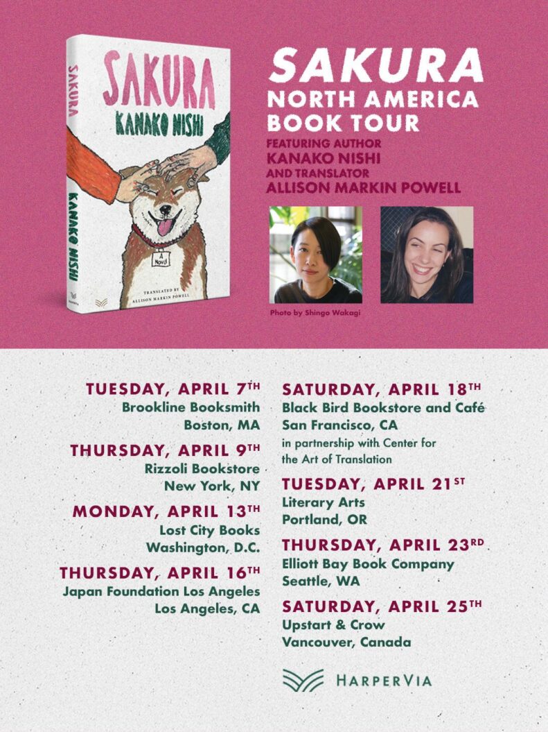 You can read a book by yourself, but when you read something thought-provoking or moving, it’s natural to want to discuss it with someone else. This will be an exciting opportunity to connect with other book lovers from different cultural backgrounds, find new and interesting books, authors, or themes, and develop a richer understanding of Japan that you wouldn’t gain from reading alone! Show HOW DOES THE UPCOMING JFT BOOK CLUB WORK? 1. Once you register for the event, you will receive guiding questions to help you think more deeply about the manga. 2. On the day of the event, we will meet via Zoom and in person at Japan Foundation Toronto Library (2 Bloor St E #300, Toronto, ON M4W 1A8 Canada). *How to find us: https://tr.jpf.go.jp/about-us/how-to-find-us/ 3. We will start with a quick introduction & ice-breaking activity (*Light refreshments will be served for in-person participants) 4. Depending on the number of the participants, we will break into a few small groups to discuss questions so that everyone has a chance to share their thoughts. 5. After each breakout session, each group will share what they have discussed with other groups. *There is no right or wrong answer. Different perspectives make discussion more fun and vibrant! Show WHERE YOU CAN FIND THE BOOK? Sakura (physical copies, ebooks and audiobooks) and the original Japanese version『さくら』(physical copy) are available at JFT Library! The checkout of the physical copies are limited to JFT Book Club participants for a 1-week loan period (non-renewable). To get a new library card or to renew your existing card, please follow the instructions found here. Email Library to place hold (physical copy) For more information about the book or where else you can get the physical copies, click here. Written by NISHI Kanako Translated by Allison Markin Powell Published by Shogakukan, 2005 / HarperVia, 2026 Available in English at last, the international bestseller from one of Japan’s most acclaimed authors, a touching tale of a broken family contending with the pain of the past to live in the present, helped by the unforgettable dog who becomes their lifeline. Sakura is the story of a family who is happy, until it isn’t. Skipping back and forth in time, it begins when the narrator, Kaoru, receives a letter from his estranged father announcing he will be home in Osaka for New Year’s. The letter spurs Kaoru to go back to his childhood home, and though he is apprehensive at returning, his spirits are unexpectedly lifted when he is greeted by Sakura, the family dog. Growing up, the Hasegawas were the perfect family. Kaoru’s loving parents doted on their children. Kaoru’s baby sister, Miki, was cute and charismatic, and his older brother, Hajime—a natural leader, athlete, and charmer—was the superstar. The middle child, Kaoru was good at school, but not a star student, friendly with girls but never popular. He was content to exist in Hajime’s shadow, and occasionally bask in his light. Then Hajime was involved in a tragic accident that fractured the Hasegawas, with nothing to keep them together but memories and melancholy. Returning home, Kaoru and his family must find the strength to reckon with the past and pick up the pieces of their shattered lives. Luckily, there is Sakura, who somehow has managed to stay happy. What’s her secret? As the Hasegawas learn to let go, it is Sakura who holds the key to help them move forward. A major bestseller in Japan now available in English, Sakura is a tender, bittersweet, funny, and beautifully told tale about the magic and mysteries of familial love, from one of Japan’s most acclaimed writers. Show ABOUT THE AUTHOR & TRANSLATOR © Shingo Wakagi NISHI Kanako is a Japanese writer and artist. She is the author of the novels Sakura, which was a major bestseller in Japan; Tsutenkaku (Osaka Tower), which won the Sakunosuke Oda Prize; Fukuwarai (Lucky Laugh), which received the first Hayao Kawai Prize; and Saraba!, which won the prestigious Naoki prize in 2015. She was named Vogue Japan’s Woman of the Year in 2015 and among Granta’s Best of Young Japanese Novelists 2016. Several of her books have been adapted for film. Born in Tehran in 1977, Nishi grew up in Cairo and Osaka and lives in Tokyo. Show SHORT STORIES BY NISHI KANKO There was something running from my eyes, but it definitely wasn’t tears. Fiction written by NISHI Kanako Burn (the English version) is published by Grove Atlantic in 2018 in Freeman’s: Power, the fifth issue of an anthology selected by literary critic John Freeman. *The digital copy is available for circulation on JF Canada/USA Digital Library. To get a new JFT library card or to renew your existing card, please follow the instructions found here. 「燃やす」 (the Japanese version) is published by Chikuma Shobo as part of NISHI Kanako’s anthology 『おまじない』 in 2021. *The digital copy of 『おまじない』is available for circulation on JF Canada/USA Digital Library. To get a new JFT library card or to renew your existing card, please follow the instructions found here. I had an odd feeling as I regarded Yō, who knew things about me that I hadn’t known. Fiction written by NISHI Kanako VIO is originally published in Japanese in the June 2019 issue of “Subaru”. The work has been translated into English by Allison Markin Powell as part of Granta’s 20 for 2020 series, one of twenty timely and exciting new works from the Japanese published at Granta.com. Morrison neither consoled me as a victim, nor condemned me as the perpetrator. Essay written by NISHI Kanako After all, our bodies too are frameworks in and of themselves. We cannot escape these boundaries. Essay written by NISHI Kanako Read Here April 2026 Saturday, April 24 (*Exact time TBA) *DETAILS COMING SOON* Saturday, April 25, 2026, 6:00PM – 7:30PM (PDT) Beloved Japanese author NISHI Kanako has written more than twenty novels, essay and short story collections