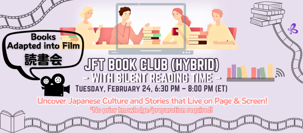 Love books, films, and discovering cultures through stories? Join our upcoming JFT Book Club – With Silent Reading Time –, where we together explore Japan-related books and manga adapted into film!