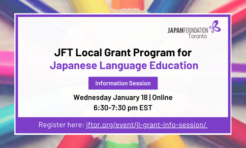 We are hosting an online information session on our local grant program for Japanese language education on Wednesday, January 18 from 6:30 pm to 7:30 pm EST.