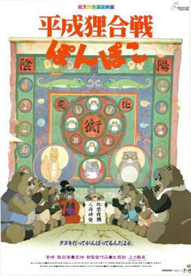 In this family friendly film, the forests are filled with groups of magical tanuki, mischievous raccoon-like animals from Japanese folklore that are capable of shape-shifting from their standard raccoon form to practically any object.
