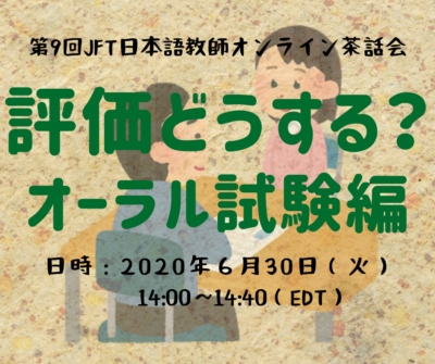 第10回JFT日本語教師オンライン茶話会:2020年7月9日(木) 6:00 pm ~ 6:40 pm(東部時間)