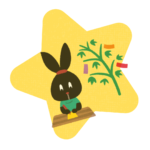 Write your desires and aspirations on a tanzaku wish card (a colourful strip of paper), then hang it on sasa (bamboo branch).