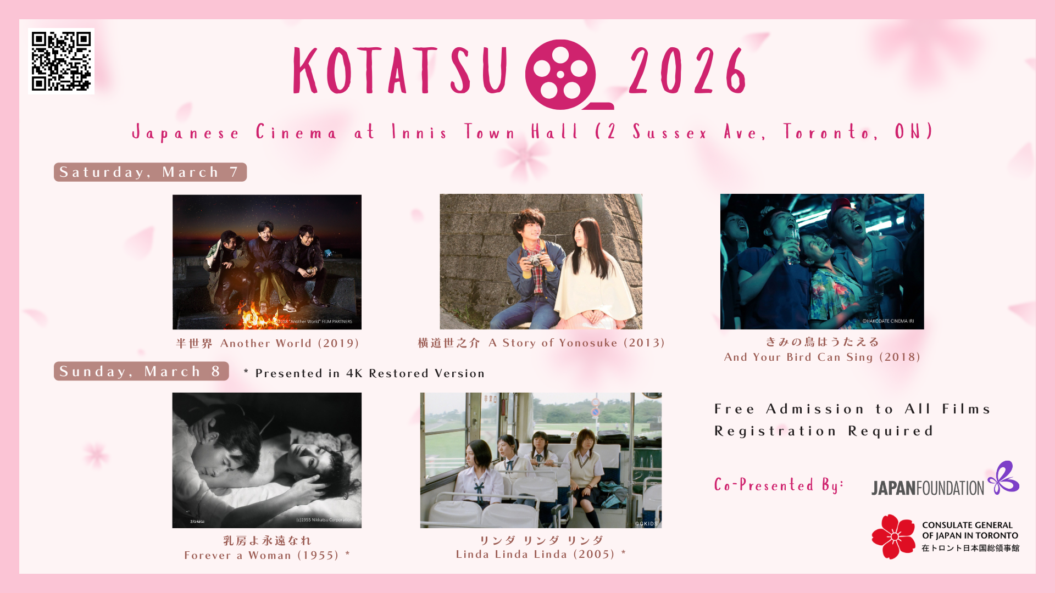 Our annual winter film showcase is returning to Innis Town Hall! This year’s edition offers a perfect blend of five Japanese films, from acclaimed contemporary films to recently restored classics. This year, the screenings will take place on Saturday, March 7 & Sunday, March 8.