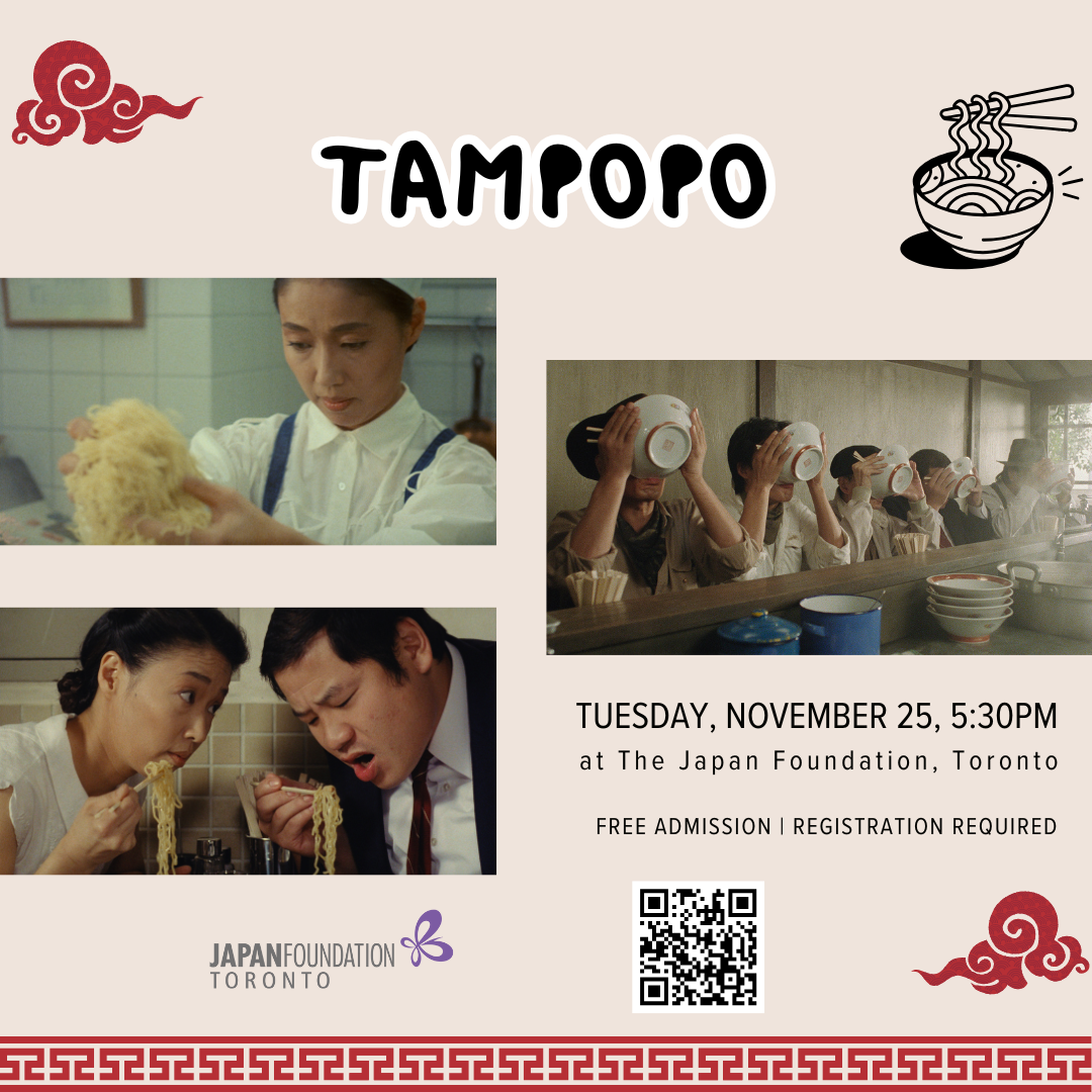 Join us for a screening of the "ramen Western" TAMPOPO (1985), on Tuesday Nov 25, 5:30 PM, at the JFT Event Hall.